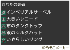まず目を引くのは、武器の「インペリアルサーベル」と頭防具の「銀のシルクハット」です。